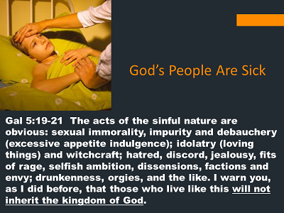 | Sin Is A Spiritual Disease Here’s the truth: Rom 3:23 (NIV)  for all have sinned and fall short of the glory of God.  Now, even though this is true of all of us, some of us take pride in the fact that our sinning took place in the past.  We see ourselves as having obtained some form of righteousness, Godliness, and holiness.  We know it all came to us as a gracious, merciful, free gift that we did not deserve; but, now that we have it, we feel superior to those who don’t have it.   Judges Here’s the deal: Mat 7:1-2 (NIV)  Do not judge, or you too will be judged.  For in the same way you judge others, you will be judged, and with the measure you use, it will be measured to you.  What we have to realize is that we are in no position to criticize, analyze, compare, or condemn anyone at any time.  If we were to look at Paul’s life before he became a Christian, we would “decide” that there was no hope for him.  If we would have examined Judas Iscariot’s life at the time when Jesus made him one of His twelve disciples, we would have “decided” that God was going to use him in a mighty way.   | Humility Here’s the system: James 4:6 (NIV)  But He gives us more grace.  That is why Scripture says: “God opposes the proud but gives grace to the humble.”  God can and will only use the humble because they can work with anyone without hurting them or neglecting them.  As we start our day, we have to be open and neutral in our evaluation of people.  We also have to be set free from grading sins and acting like some are better than others.  Rom 6:23a (NIV)  For the wages of SIN is death.  That is true of ANY sin; any sin that has not been forgiven and cleansed by God will cause us to spend eternity without God.   Grace And Mercy If it were not for the grace and mercy of God providing us with salvation, we would all be spending eternity without God.  If we will all accept these facts and allow God to write them on our minds and hearts, we will then be ready to go into God’s spiritual hospital and help hurting people.  Most of the sins that God’s people commit in group gatherings comes from judging, evaluating, comparing, and pride.  Just like a doctor has to get rid of all contaminants off of them before they go into surgery, so we have to let God deliver us from judgmentalism.   |