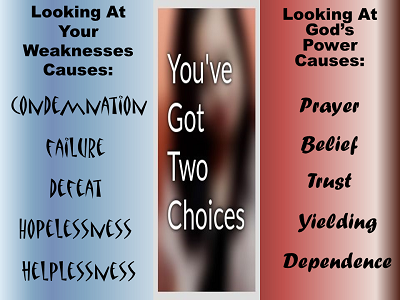 Whatever it is that is wrong with us, we can bring it to God and HE will work with us to change it. We can either go into condemnation or we can pray. We can either spend all our time looking at our weaknesses and failures or we can see the power of God to keep us growing spiritually.