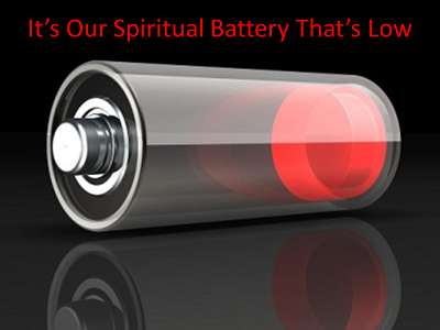|  | We are running out of spiritual power.  Our spiritual batteries are just about on zero.  Why?  We are using up everything we get from God on others.  The more we minister, the more we need to spend time with God and His Word.