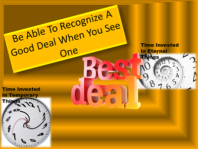 | Investment Opportunities Mat 13:44-46 (NIV)  The kingdom of heaven is like treasure hidden in a field. When a man found it, he hid it again, and then in his joy went and sold all he had and bought that field. Again, the kingdom of heaven is like a merchant looking for fine pearls. When he found one of great value, he went away and sold everything he had and bought it.   Before the man found the treasure, his value estimation was in “all he had.” But, he found a “a better deal.” When the man found the treasure, it changed his whole way of thinking. That is what Jesus is trying to help happen to us. He is showing us a treasure that is so valuable, it can enable us to go and sell all we have and invest it all in the eternity He has prepared for us. God ALWAYS Produces Incredible Things John 14:2-3 (NIV)  In My Father’s house are many rooms; if it were not so, I would have told you.   | I am going there to prepare a place for you.  And if I go and prepare a place for you, I will come back and take you to be with Me that you also may be where I am.   We have to see the value of heaven and the kingdom of God. What are eternal riches worth? To our body it is just pie in the sky by and by. It can’t imagine anything beyond this earth. To it, this has to be as good as it gets. What we forget is that the God, Who made this earth, says that heaven is far superior. We are like the children of Israel. As they left Egypt, they couldn’t imagine that the promised land could possibly be better than Egypt. Every time God didn’t come through with the things they demanded, they talked about killing Moses and going back to Egypt. It took the mighty power of God to finally get the next generation of people into the promised land. There was no way God could talk the first generation into taking the promised land, because their hearts were in Egypt. It wasn’t until the second generation came into existence that God found a people who could see the better deal. |